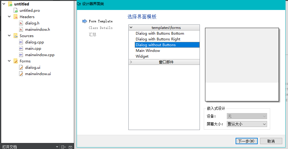 选择项目 -> AddNew -> QT -> Qt设计师界面类 -> 选择空白Dialog -> 命名为Dialog保存
