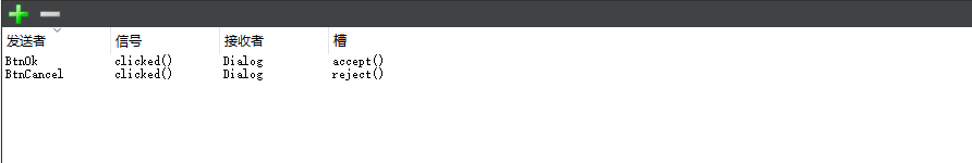 其次需要在Dialog对话框上增加两个信号,分别是点击和关闭,并将信号关联到两个槽函数上,其信号应该写成如下样子。