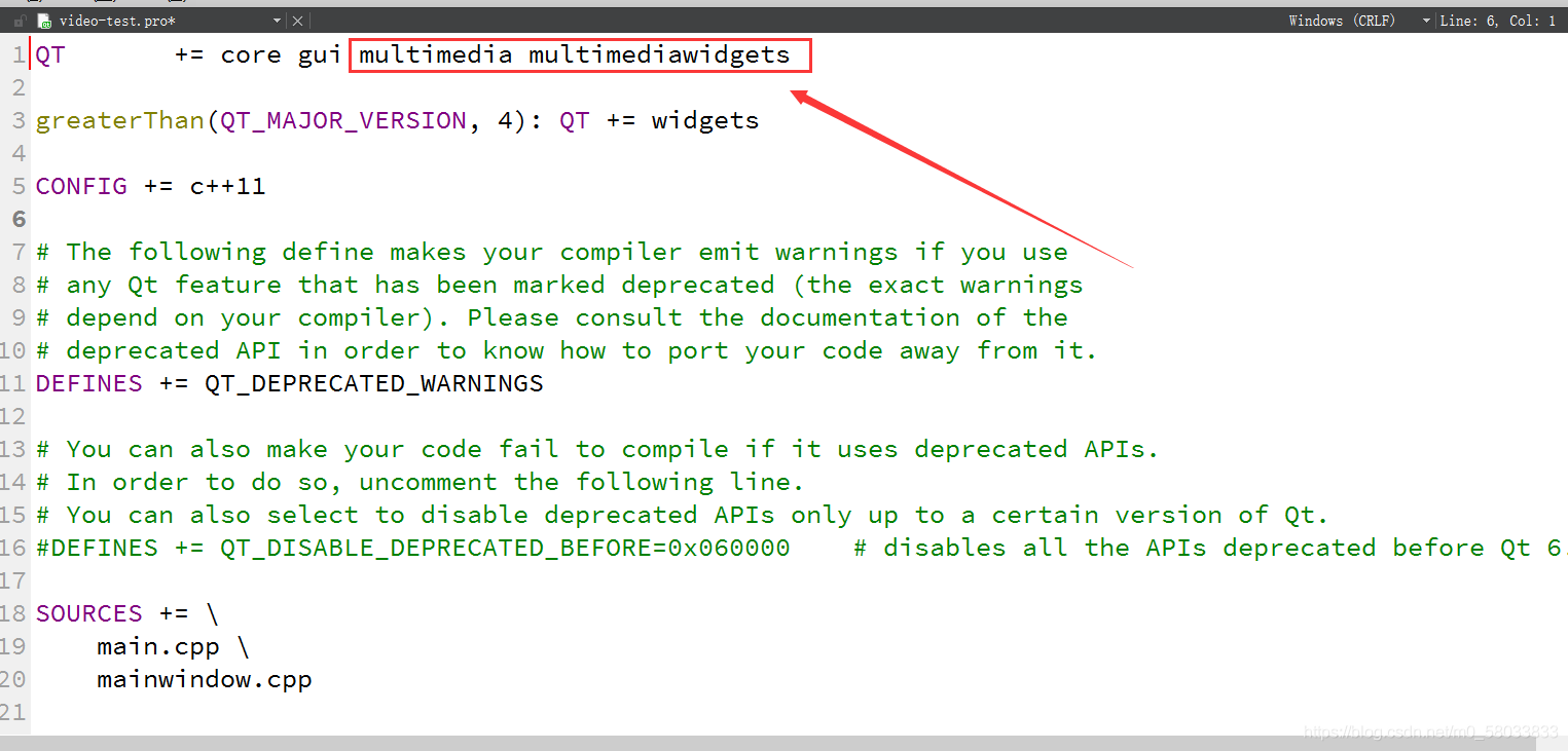 QT += multimedia multimediawidgets //QT += core gui是新项目默认带的 不需要自己手动添加