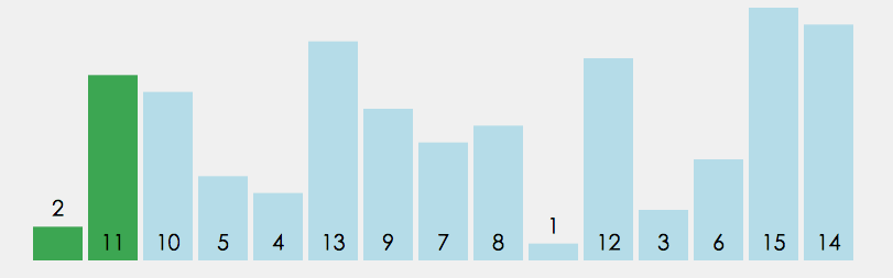 每一次从待排序的数据元素中选出最小(或最大)的一个元素,存放在序列的起始(末尾)位置,直到全部待排序的数据元素排完 。如图: