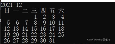 以上就是激情小蘑菇最近收集整理的关于C语言打印某一年中某月的日历的全部内容,更多相关C语言打印某一年中某月内容请搜索靠谱客的其他文章。