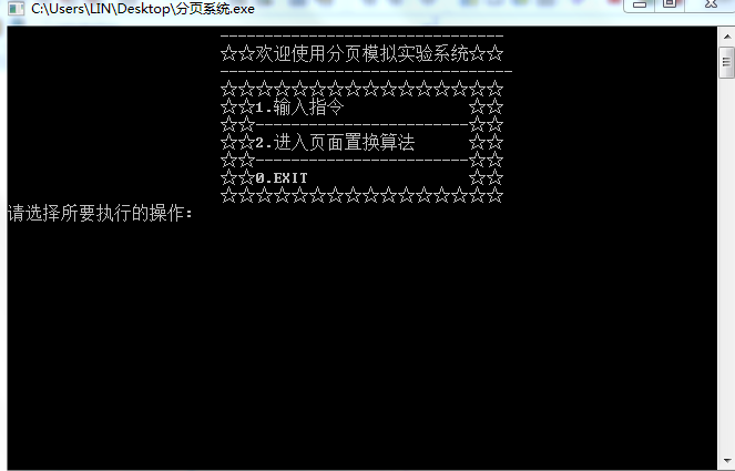 printf("☆☆欢迎使用分页模拟实验系统☆☆n");