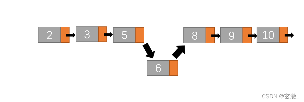 此时如果需要在8前面加入一个6,那么只需要向下图一样更改一下就可以了,而不用向像最开始那样把每个数向后挪。
