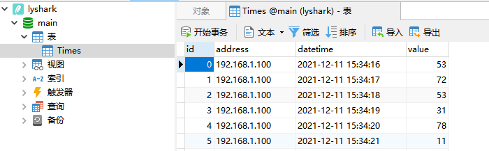 首先通过如下代码,创建Times表,表内记录有某个主机某个时间节点下的数值: