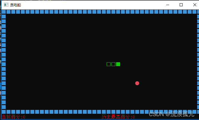 判断得分: 若蛇头即将到达的位置是食物,则得分。得分后需要将蛇身加长,并且更新当前得分,除此之外,还需要重新生成食物。