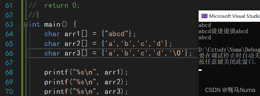 因为arr1是由字符组成的字符串,字符串的最后,隐藏有一个结束标准 ,只不过我们看不到罢了~
