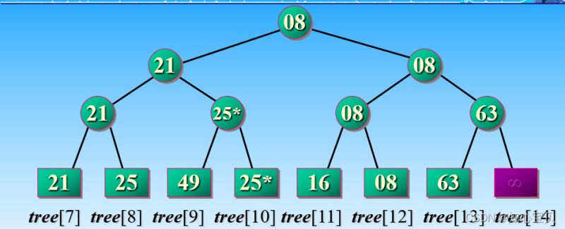 - 最下面一行21 25 49 25 16 08 63是给定需要从小到大排序的数字