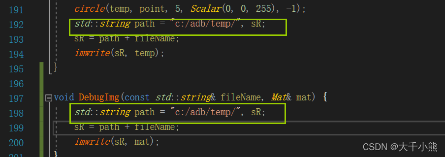//DebugImg("1黑人位置.png", srcImage, Point(matchLoc.x + Tem_img.cols * 0.5, matchLoc.y + Tem_img.rows));