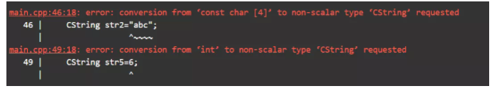 上面的使用方式都会默认调用相应的构造函数实现对象的初始化,以CString str5=6为例,在对对象进行实例化的过程中主要进行了如下操作: