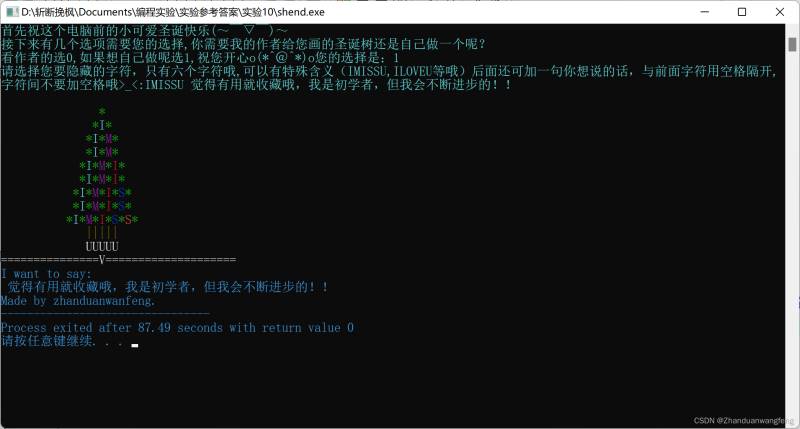printf("接下来有几个选项需要您的选择,你需要我的作者给您画的圣诞树还是自己做一个呢?");