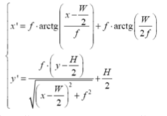 float x1 = f * atan((x - w / 2) / f) + f * atan(w / (2.0f * f));