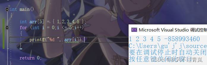 数组的下标范围是有限的,因为数组的下标是由0开始的,所以数组能访问的的下标就是数组元素个数减一个(N-1),当访问了不属于数组元素地址范围的空间,就叫做数组越界。假设一个arr[10]的数组,当访问下标时大于等于10的时候,就会导致数组向后溢出,也叫下溢出,相对的,当数组向数组第一个元素的前面越界访问时,也就是下标小于0,就叫上溢出,越界访问是非常危险的一个操作,因为有的编译器没有检查数组是否越界的功能,所以,当程序员在写代码所以数组时,要非常注意数组是否存在越界问题。二维数组的行和列也同样
