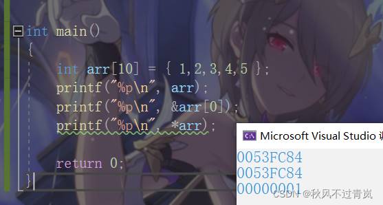 一维数组的元素地址是连续的,也就是元素的地址一个紧挨着一个。地址在内存是以二进制进行存储的,但是如果以二进制来展示的话就会非常的长而且也未必好理解,所以就由十六进制来进行展示。(下图)观察下图可发现,地址的是由低到高随着下标增长而增长的,有规律的递增,且每个数组元素地址都相差了四个字节,相差的四个字节是一个int整形的空间大小。
