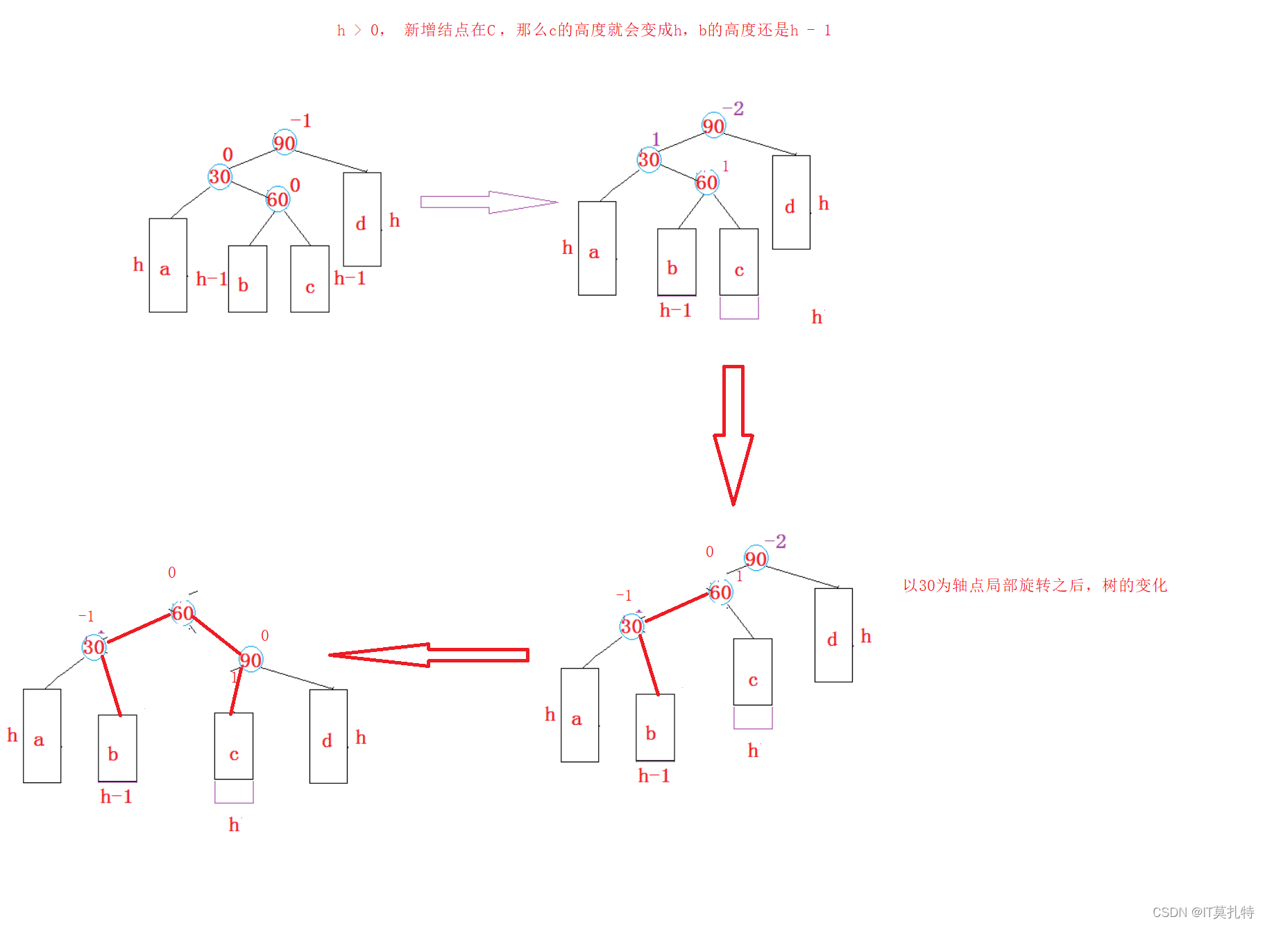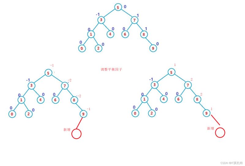 当左右子树的高度发生了变化,那么就需要对父亲及祖先路径上的所有结点的平衡因子进行调整