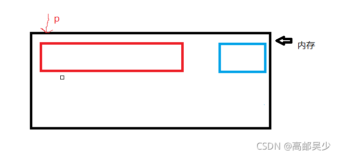 一开始p在上图位置,然而随着for循环,p++这个操作,p指向的位置不断往后,一直到下图位置