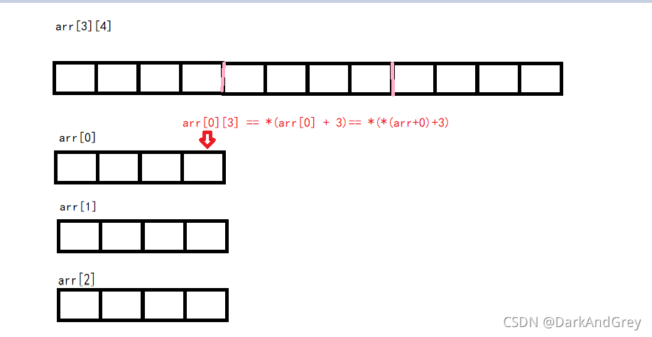 另外有一点请记住: arr[ i ] == *(arr + i ); arr[ i ][ j ] == *( *(arr + i)+ j)