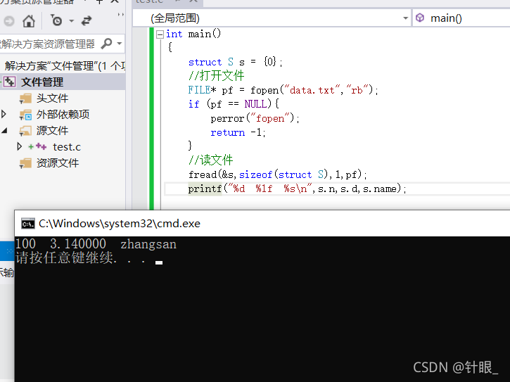 但是,这里是将data.txt文件放在了该.c文件目录下,在我将该文件放在别的地方,仍然打开失败报错。