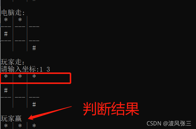在这里,代码能走,但不能判断输赢,所以接下来,我们实现最后一步判断输赢