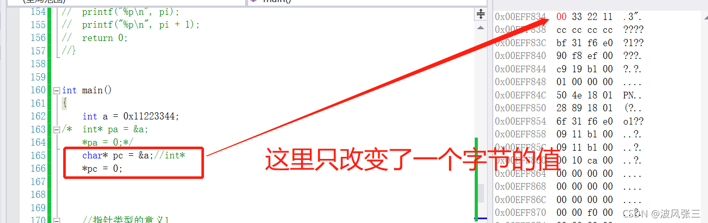 指针类型决定了指针解引用操作的时候,一次访问几个字节(访问内存的大小)