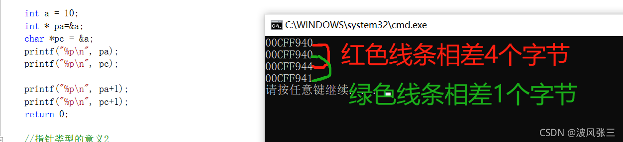 printf("%pn", pa+1);//如果是整型指针int*,+1则跳过4个字节、