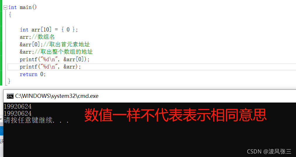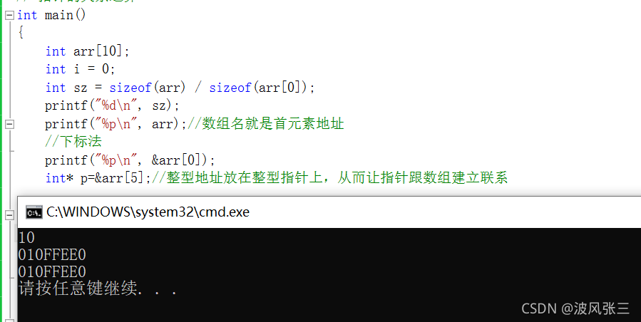 printf("%pn", arr);//数组名就是首元素地址