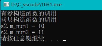 通过代码运行结果可以看到,s1对象调用了有参构造函数,当把s1传给函数的参数s的时候调用了拷贝构造函数,函数执行完调用了s对象的析构函数。