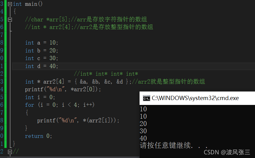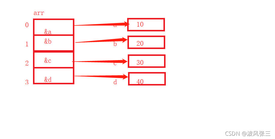 int * arr2[4] = { &a, &b, &c, &d };//arr2就是整型指针的数组