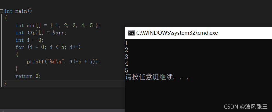 所以,上面的指针p是一个指向整型变量的指针,它并不是指向数组的指针。而数组指针,才是指向数组的指针。