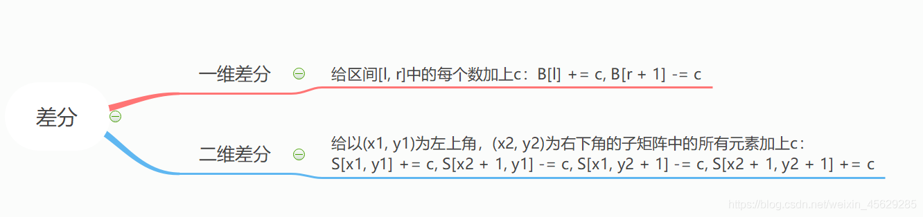 二维差分数组的构造同一维差分思维相同,因次在这里就不再展开叙述了。