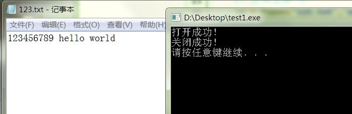 程序执行完成之后,打开123.txt文件,可以看到程序已经在原来的字符串后面追加了一个字符串。fprintf()函数中第一个参数的文件,不仅仅指的是文档,也可以是显示器。在C语言中键盘和显示器也可以是文件。
