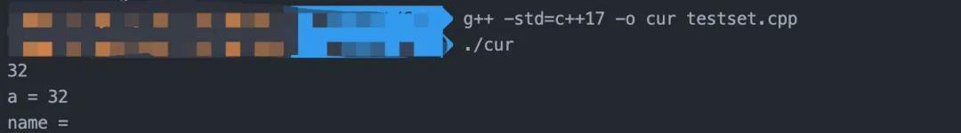这段代码很简单,我们定义了两个变量。一个是int型的a,一个是字符串name。我们使用cin读入a,使用getline读入name。