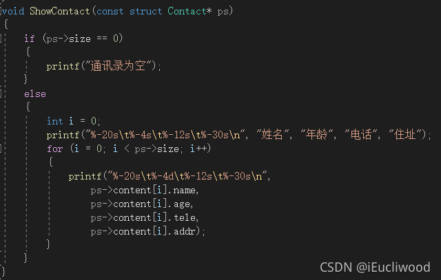 基本逻辑实现后开始考虑创建通讯录,通讯录里会记录人的信息。所以要先能够描述人的信息: 创建表达人的信息的结构体类型,在Contact.h中定义: