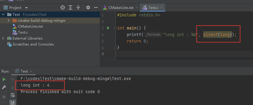 printf("long int : %dn", sizeof(long));