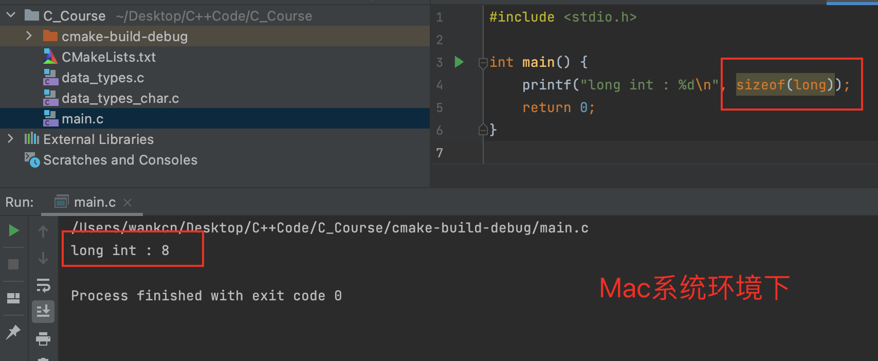 long在linux64环境下所占用字节位8,也就间接说明了long在macOS下的字节长度也是8。(这是因为MacOS系统和Linux都是类Unix系统,只不过基于不同的内核)