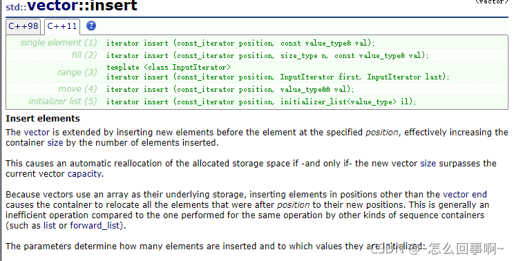 同理有:vector::insert - C++ Reference