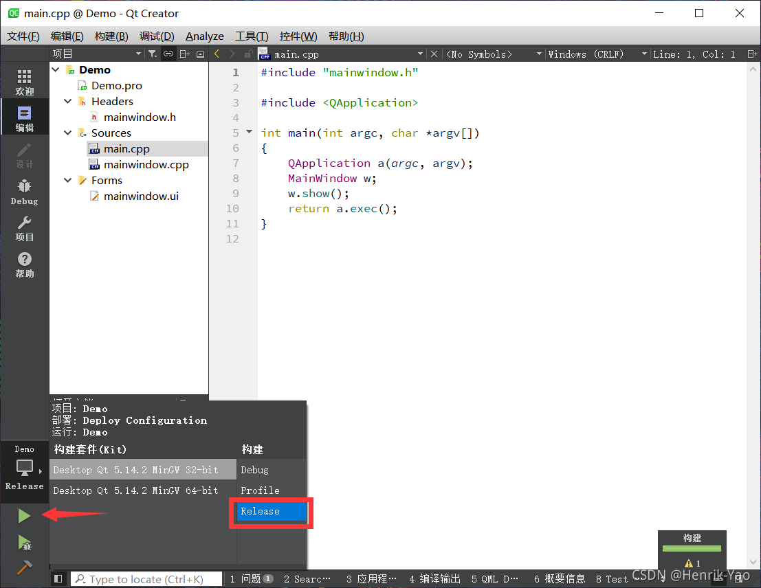 构建套件中选择release选项后,重新run一遍项目