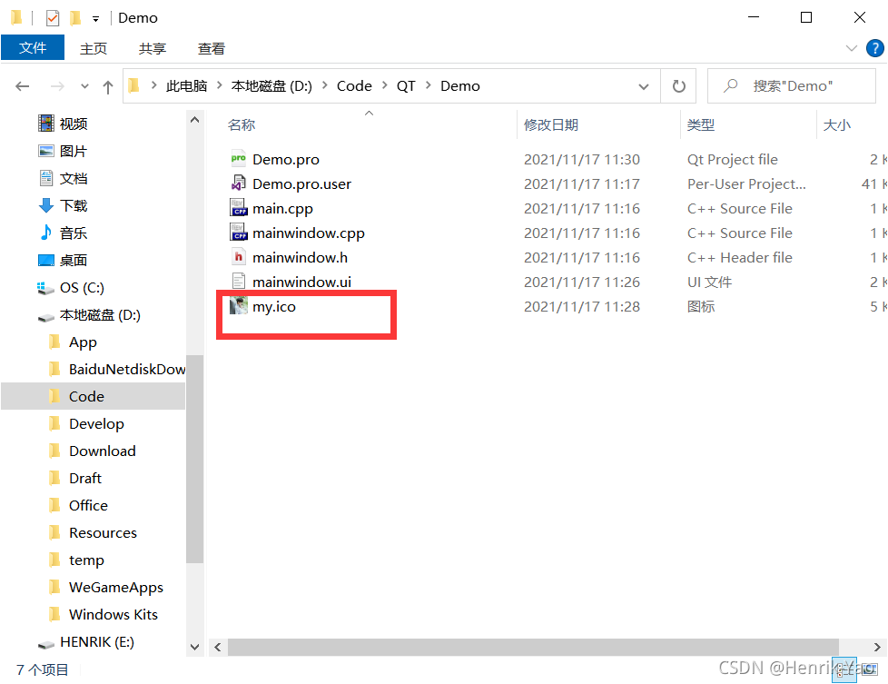 直接将准备好的ico图标拖进项目文件夹