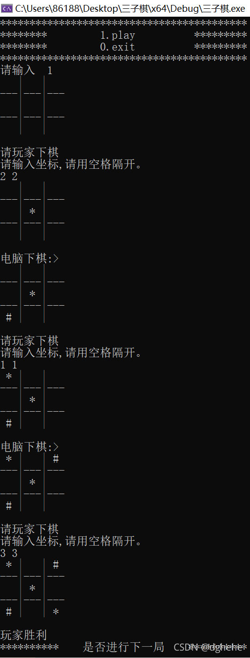 以上就是彩色蛋挞最近收集整理的关于C语言实现三子棋游戏含完整代码的全部内容,更多相关C语言实现三子棋游戏含完整代码内容请搜索靠谱客的其他文章。
