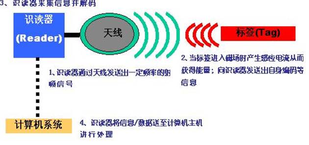 无线射频识别技术(Radio Frequency Identification,RFID)是一种非接触的自动识别技术,其基本原理是利用射频信号和空间耦合(电感或电磁耦合)或雷达反射的传输特性,实现对被识别物体的自动识别。