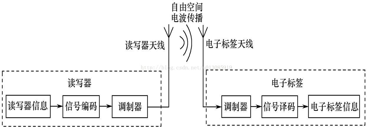 根据RFID通信过程的图解,可以很清楚的看到 :读写器电子标签之间的数据传输是双向的。读写器中的信号经过信号编码、调制器,再通过天线传出去,经过传输介质,到达电子标签中,在经过解调器对接收到的信号进行解调议码等处理后,恢复成基带信号;相应的,电子标签中的信号经过相同的过程到达读写器中进行解调,恢复成相应的基带信号。