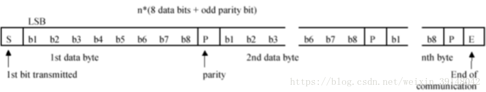 每个数据字节后面跟随一个奇数奇偶校验位。