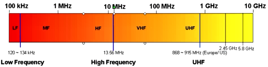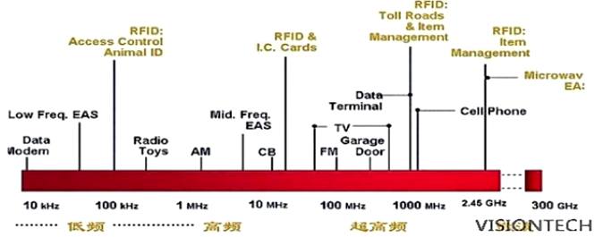 RFID的工作频率有 低频,高频,超高频,微波 ,不同的频率的RFID产品有不同的特性