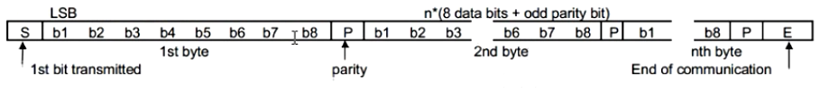 n * (8 个数据位 + 奇数奇偶校验位),n >= 1