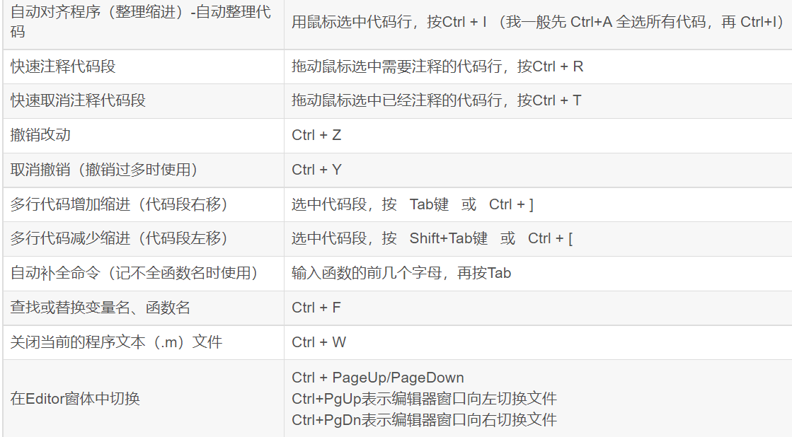 以上就是忧伤故事最近收集整理的关于Matlab 常用快捷键MATLAB-Numpy函数对照表常见快捷键Matlab 工作窗口通用命令 编辑器窗口(Editor)下的常用快捷键 代码调试常用快捷键 命令窗口(Command Window)下的常用快捷键与命令 切换窗口快捷键Matlab 常见函数对照表注意参考博客的全部内容,更多相关Matlab内容请搜索靠谱客的其他文章。