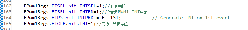 1、INTEN 使能 ePWM的中断,INTSEL选择中断发生条件