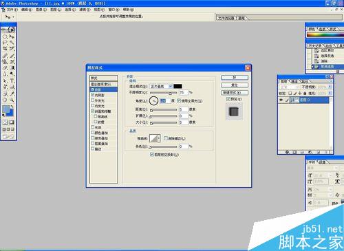 然后反选,将背景图多余的地方删除,取消选取,然后按下图给图层加上投影效果