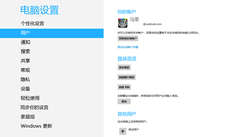 注册完成之后,现在就可以通过微软帐号登录Win8系统了,下面我们就来看看该如何设置同步。同样是在Modern界面进入“更改电脑设置”,选到“同步你的设置”部分,在这里我们会看到很多条目,可以选择开关。