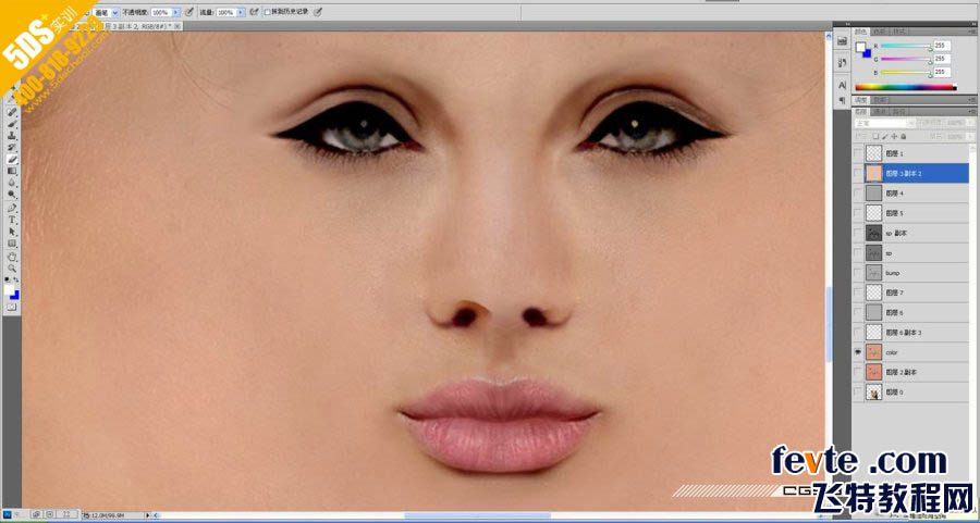 最后通过修饰,绘制出下面这张图你会发现她上面的毛孔分布,以及色彩分布都是按照真实的人物来绘制的。如果你会化妆,你会更快的适应写实皮肤的绘制的。