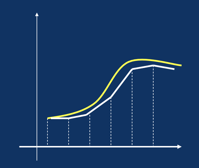 观察图像可以发现,此Euler方法和解析法相比,精准度还有一定的距离。于是提出以下改进版的欧拉方法