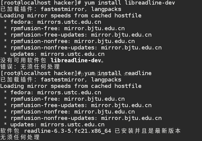 于是安装yum install readline-devel 成功